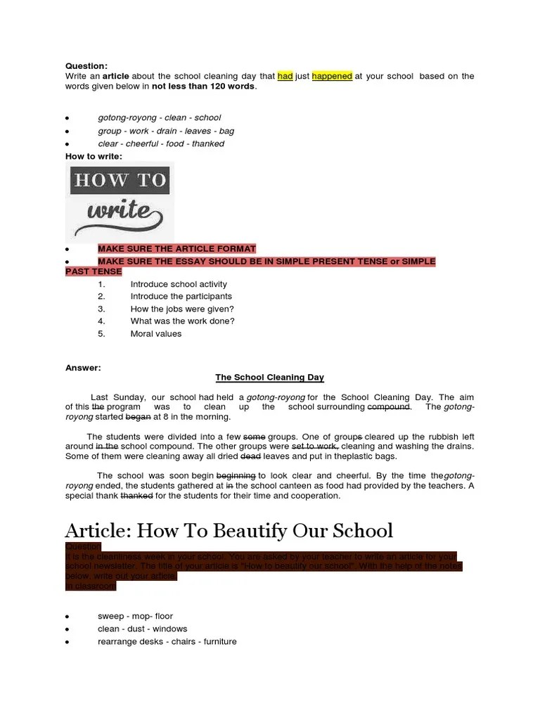 Gotong royong, add to my workbooks (2) Here i have a sample of articles essay for your reference. On 14th of april 2019, i participated in 'gotong royong perdana' organized by persaka. I was so engross studying world history and writing an essay. Organizing a gotong royong for the purpose not only clears away the rubbish, it is also a useful method for the residents of a locality to become more .